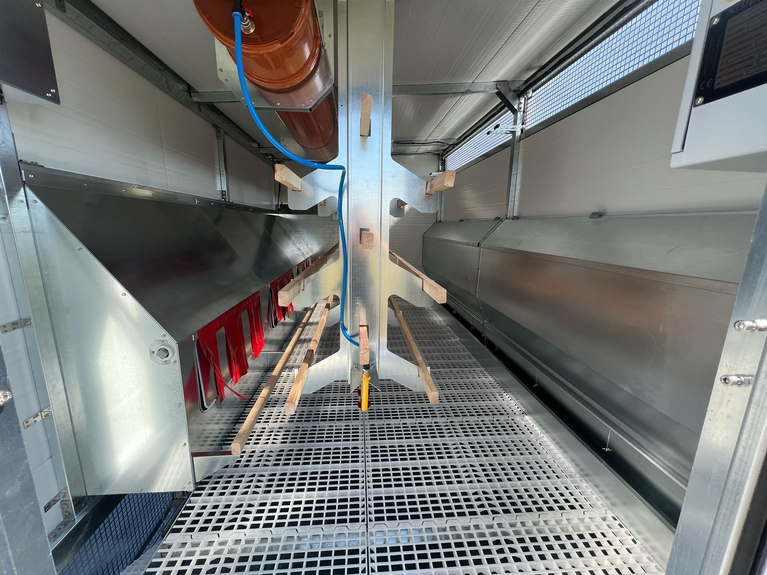 Over time, the Eko 100 has gained particular recognition in Switzerland. Farmers there appreciate its durability, well-thought-out design and ease of use. To meet Swiss requirements, we have developed a special version of the Eko 100 CH that is adapted to local animal welfare regulations. In 2025, this model received official certification from the BLV (eng. Federal Food Safety and Veterinary Office). This confirms that our design fully complies with Swiss standards for the keeping of laying hens.